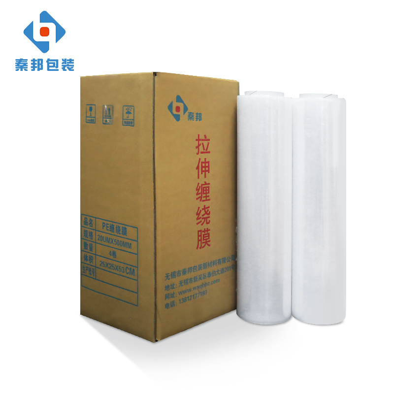 PE拉伸膜/纏繞膜,又稱LLDPE彈性膜/包裝膜,是一種透明、富有彈性及強度且無毒無害的柔軟聚乙烯塑料薄膜,符合國際環(huán)保衛(wèi)生標準,可在不加熱的情況下,進行縱橫雙向冷拉伸,依靠它本身自粘性包裝各種產(chǎn)品,并可使貨物長期保持張力而不至于松散,強度高、彈性拉力大、對任何形狀的物品都能裹緊,裹成一個整體。拉伸包裝比收縮包裝節(jié)省材料,且不需要收縮包裝機節(jié)省能源;具有良好的防松散、防雨、防塵、防盜等效果。有單面粘性的產(chǎn)品,減輕運輸貯存中灰塵、沙粒,對膜表面污染。